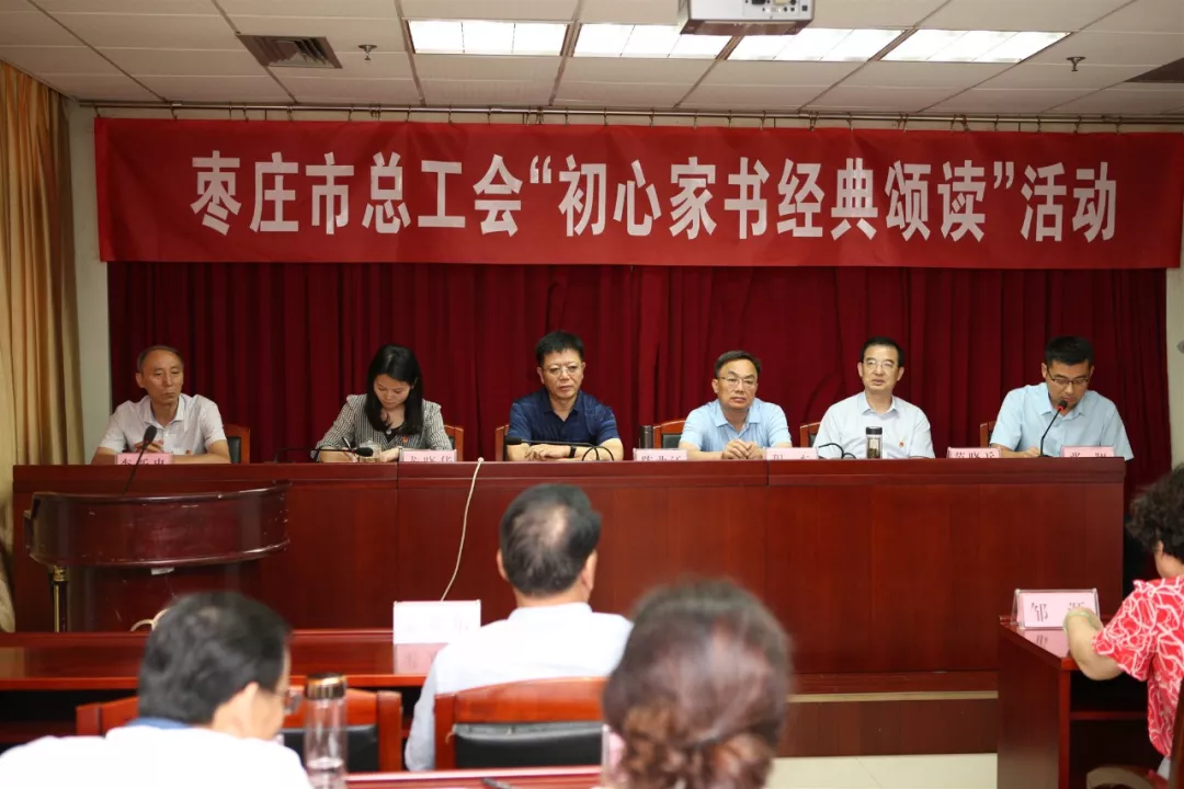 8月30日,枣庄市总工会组织开展了第三期“初心家书经典颂读”活动。枣庄市总工会党组书记、常务副主席陈业江,党组成员、副主席程杰、龙晓华、范晓兵,党组成员、经审委主任李新忠,女职委主任邹源、四级调研员梁龙东出席活动。枣庄市总工会机关部室、事业单位全体干部职工参加了活动。