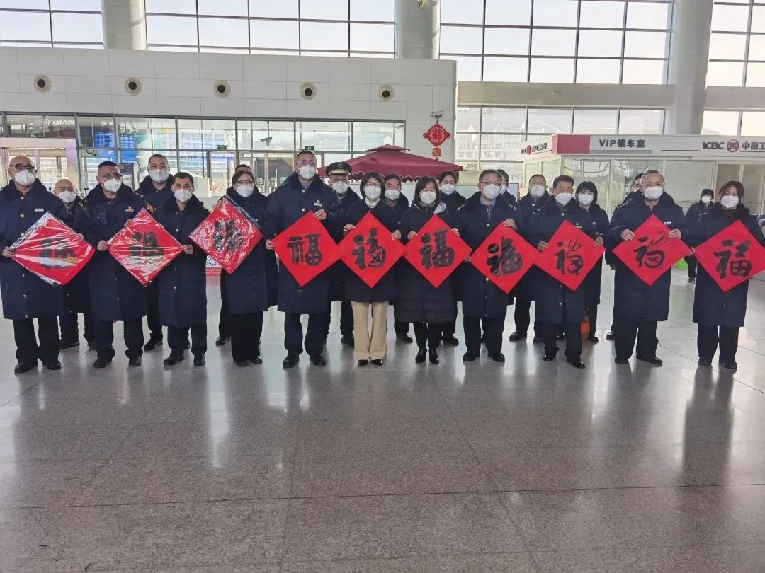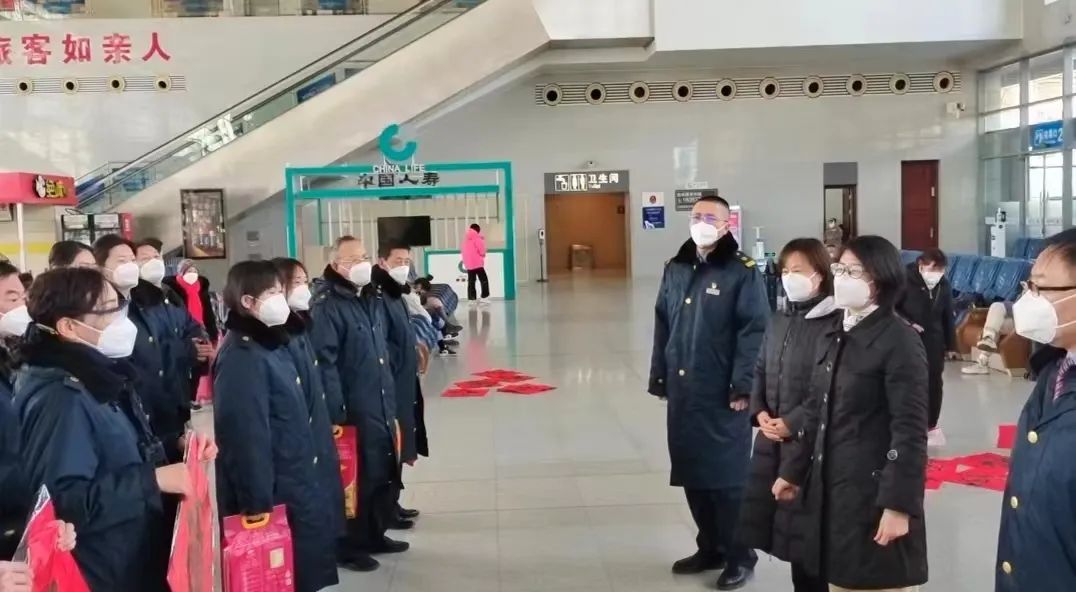 1月20日,市总工会党组书记、常务副主席闫羲和到枣庄高铁站,走访慰问坚守春运一线的职工,为他们送去节日用品、春联及新春祝福。市总工会党组成员、女职委主任周琴参加活动。