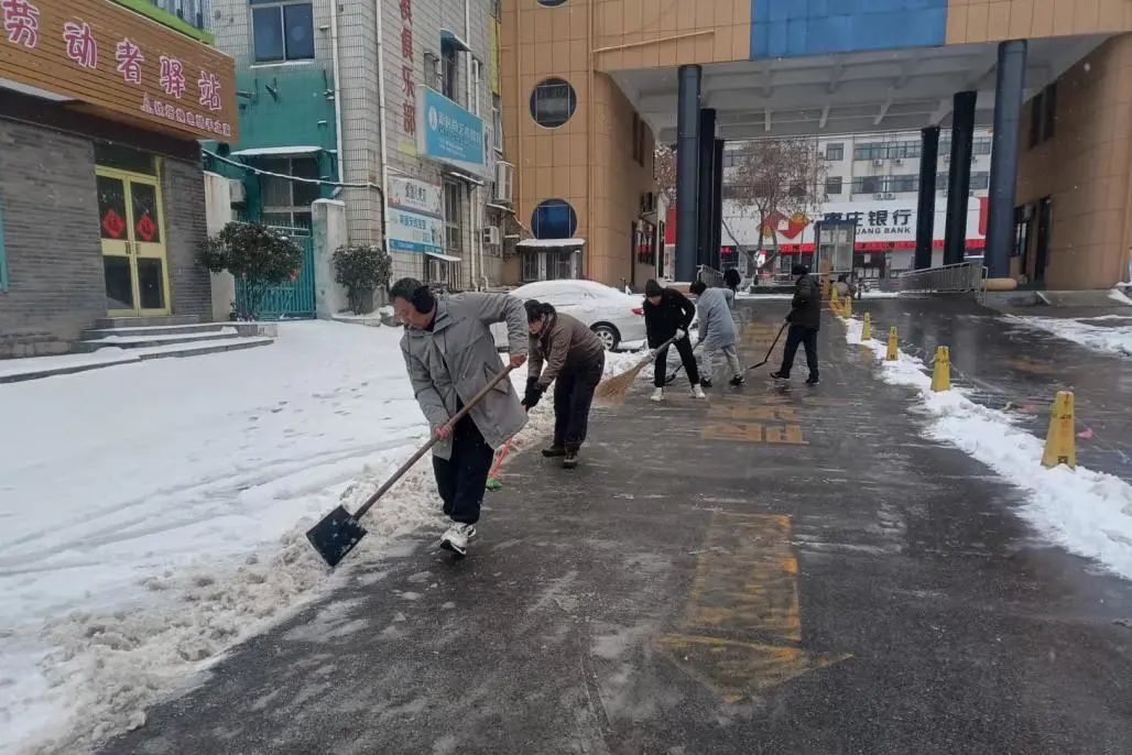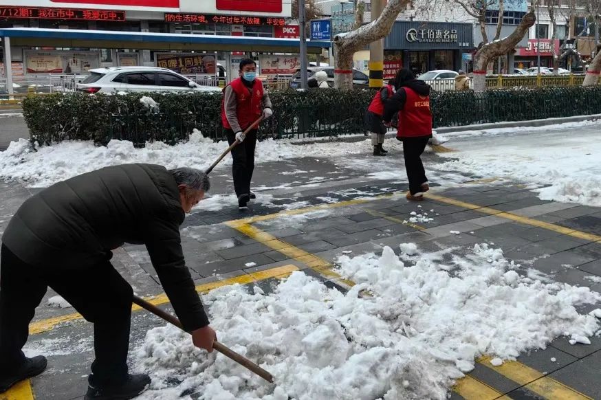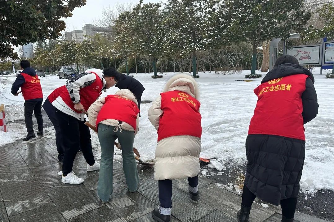 市总工会领导干部率先垂范、主动带头扫雪除冰,全体志愿者踊跃参与,在市总工会、市工人文化宫和市职工服务中心及周边街道,挥舞着铁锹和扫帚对积雪进行清扫。大家团结协作、配合默契,经过一上午的浴“雪”奋战,道路上的积雪得到有效清理。市总工会志愿者们以实际行动践行“奉献、友爱、互助”的志愿服务精神,为交通安全和城市文明贡献了工会力量。