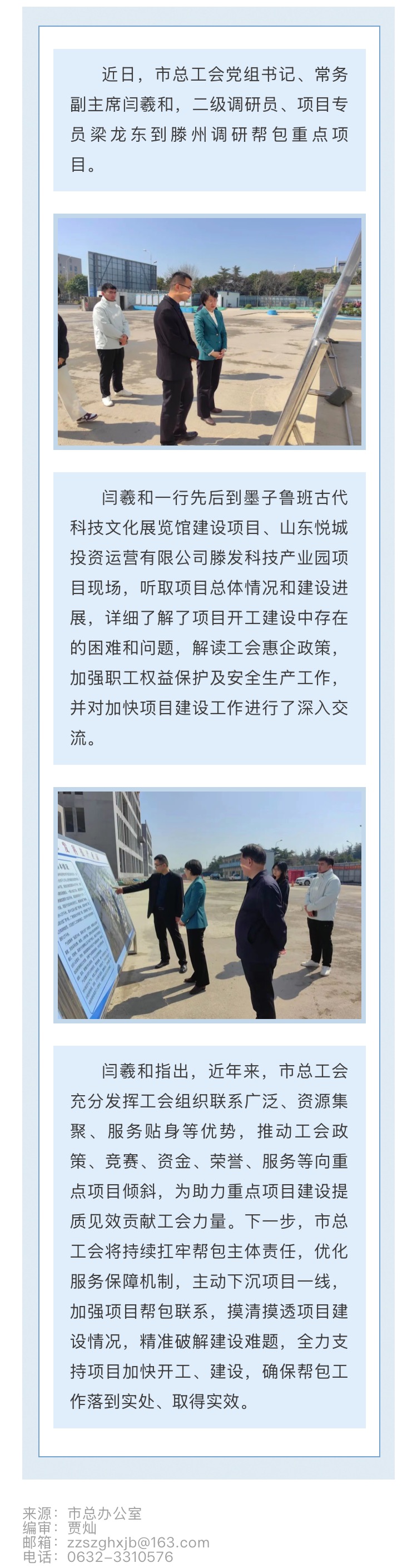 枣庄市总工会调研帮包重点项目加快推进项目建设