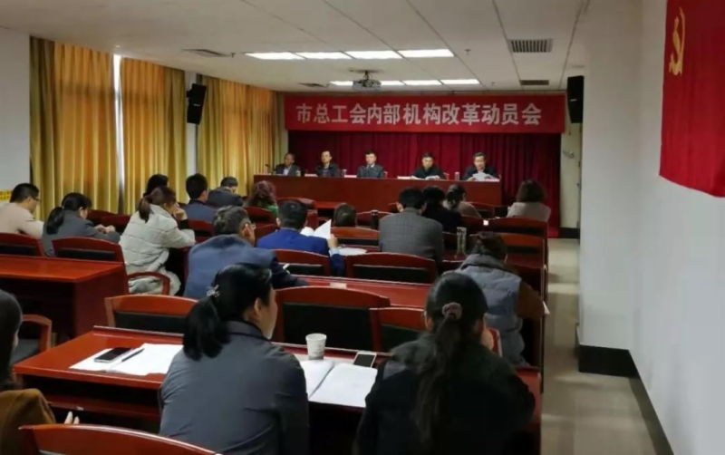 11月9日,市总工会内部机构改革动员会召开,对机关和所属事业单位机构改革作出动员部署。市总工会党组书记、常务副主席陈业江作动员讲话。市总工会党组成员、副主席程杰、范晓兵、胡安源,党组成员、经审会主任李新忠出席会议并分别传达了相关文件。会议由胡安源主持。市总工会机关各部室、直属事业单位全体人员参加了会议。