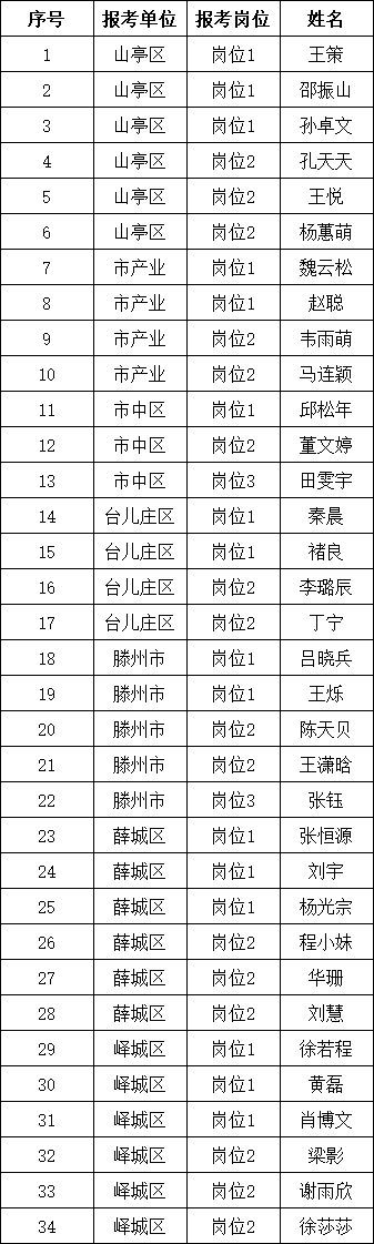 根据《2025年枣庄市工会社会工作者公开招聘公告》及有关规定,经网上报名、资格初审、笔试、资格复审、面试、考察和体检等程序,确定34名拟聘用人员(名单见表格),现予以公示,公示期为5个工作日(2025年12月26日-2026年1月4日)。公示期满,对没有问题或者反映问题经查不影响聘用的,办理劳务派遣聘用手续。
