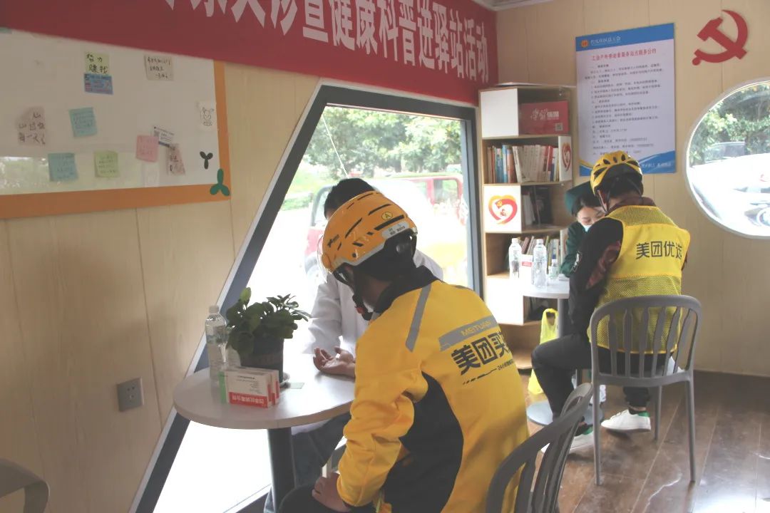5月29日,台儿庄医院组织医护人员到工会驿站,为新业态新就业群体开展了免费义诊活动。医护人员携带心电图机、血细胞分析仪等设备,为他们提供健康检查,并围绕健康素养、常见病预防、合理膳食等方面进行了科普宣传,提升了新业态新就业群体的卫生健康知识水平。