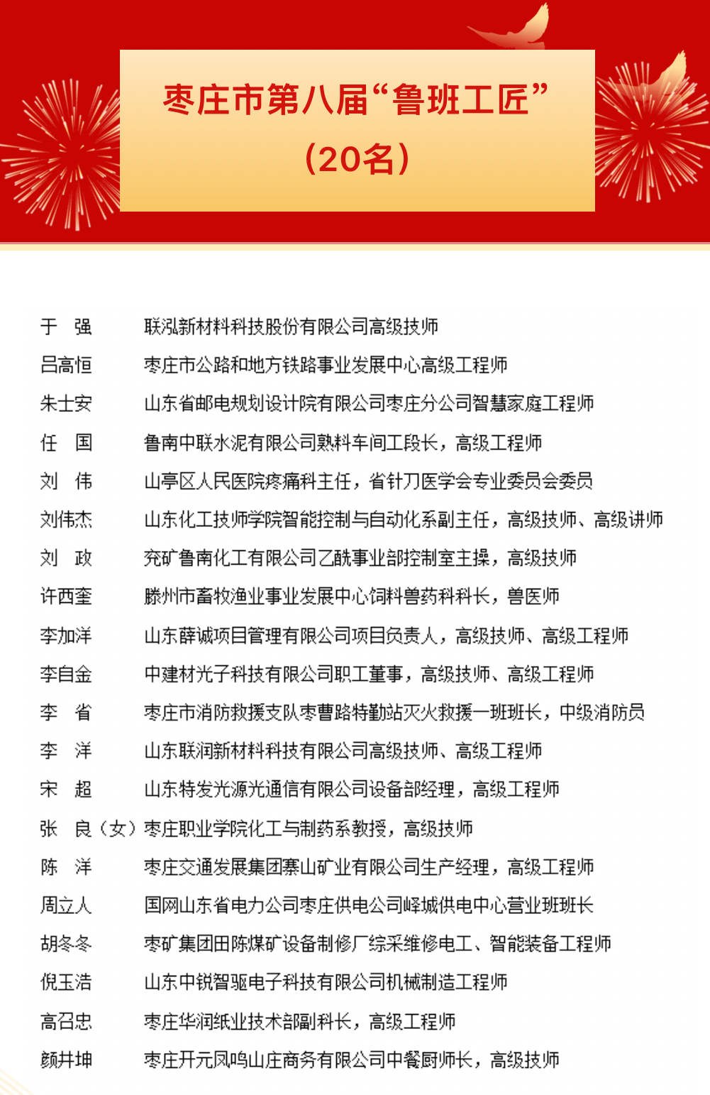 全年新培育“鲁班工匠”20名、“枣庄手造工匠”10名,新增省级工匠7名,连续4年实现省级“大工匠”榜上有名;带动区(市)及行业企业打造“奚仲工匠”“运河工匠”“国资工匠”等特色品牌140余个,累计培育各类工匠1860余名,其中“鲁班首席工匠”1名,齐鲁大工匠、山东手造大工匠5名,齐鲁工匠、山东手造工匠25名,品牌影响力持续攀升。