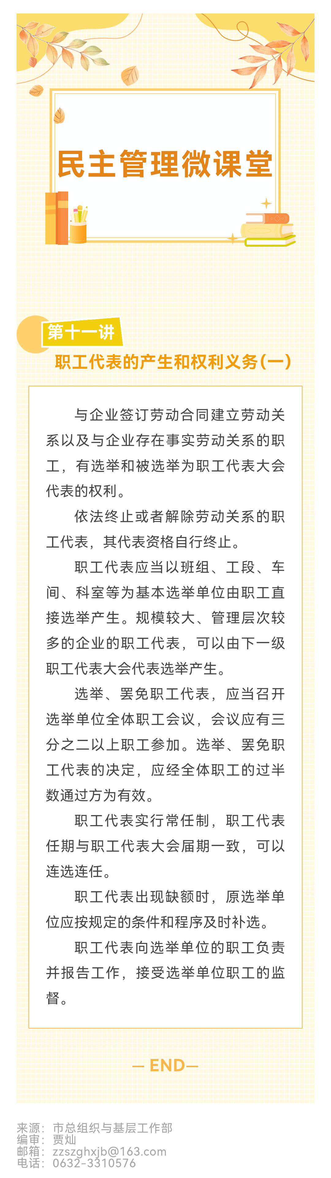 【民主管理微课堂】第十一讲——职工代表的产生和权利义务(一)